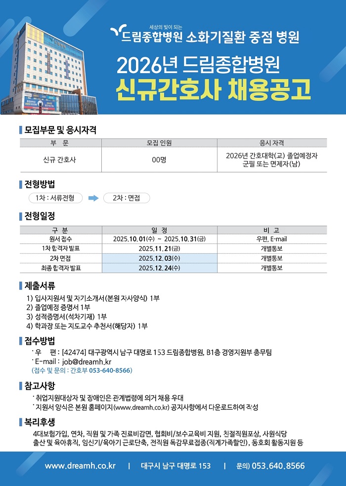드림종합병원, 2026년 신규 간호사 채용 | |