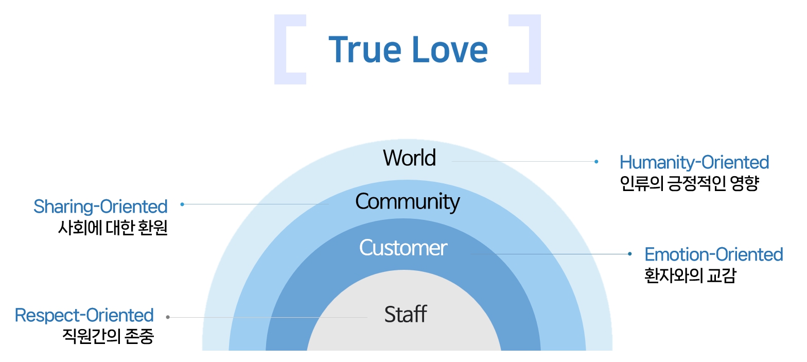 "Dream team, Dream service"를 나타내는 "드림종합병원, Dream General Hospital"입니다. "사랑과 건강을 돌려드린다"는 의미도 내포되어 있습니다.