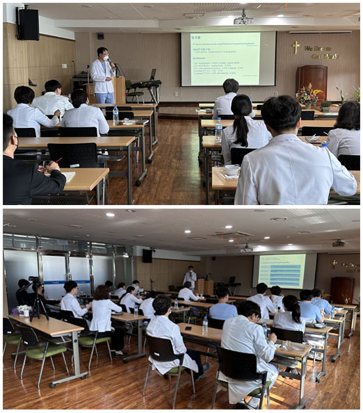 11월 7일(월) 코로나19 방역수칙에 맞춰서 드림종합병원 하반기 진료부 conference를 진행하였습니다. 내과 홍문기 과장님께서는 CI-AKI, CA-AKI의 정의와 발생률, 위험인자, 예후에 대해 여러 자료와 사진을 활용하여 설명해 주셨으며, CIN의 가이드라인과 드림종합병원의 조영제에 대해서도 자세히 말씀해 주셨습니다.